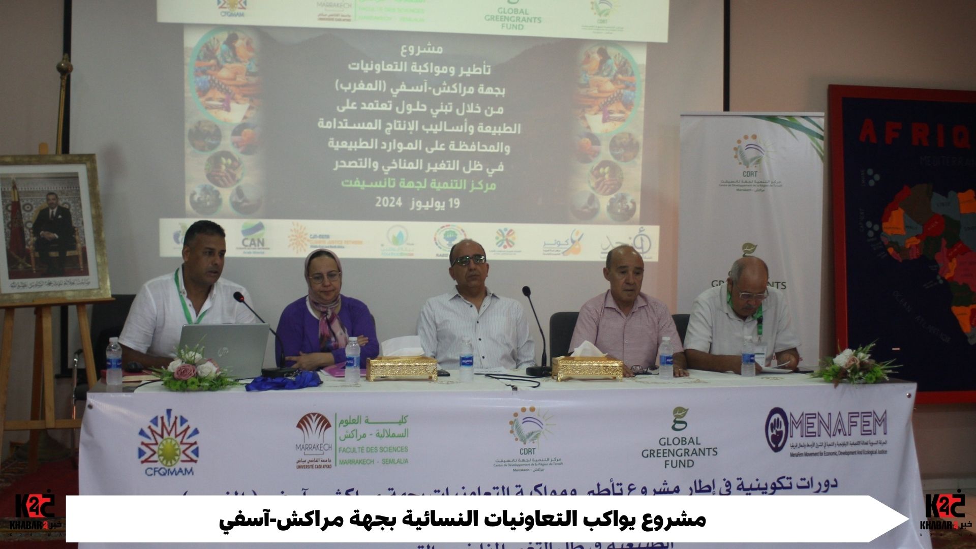تأطير ومواكبة التعاونيات النسائية بجهة مراكش-آسفي، مشروع يتبنى حلول تعتمد على الطبيعة وأساليب الإنتاج المستدامة والمحافظة على الموارد الطبيعية في ظل التغير المناخي والتصحر ، ينجز من طرف مركز التنمية لجهة تانسيفت والممول من طرف صندوق المنح الخضراء العالمي وبمساهمة عدد من الشبكات والهيئات الإقليمية الفاعلة في مجالات التنمية المستدامة،بمركز التكوين و التأهيل في حرف الصناعة التقليدية -باب دكالة-ما بين 19 و 21 يوليوز 2024.