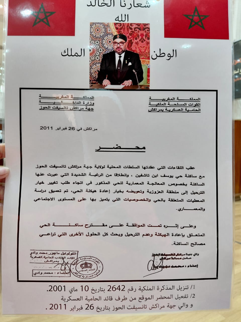 ورفع المحتجون شعارات تُطالب المجلس بالتراجع عن مخطط ترحيلهم إلى منطقة العزوزية، مؤكدين تمسكهم بخيار إعادة هيكلة حيهم التاريخي بما يحفظ نسيجه الاجتماعي والاقتصادي، مع مراجعة مقترحات التعويض لتكون عادلة ومنصفة.