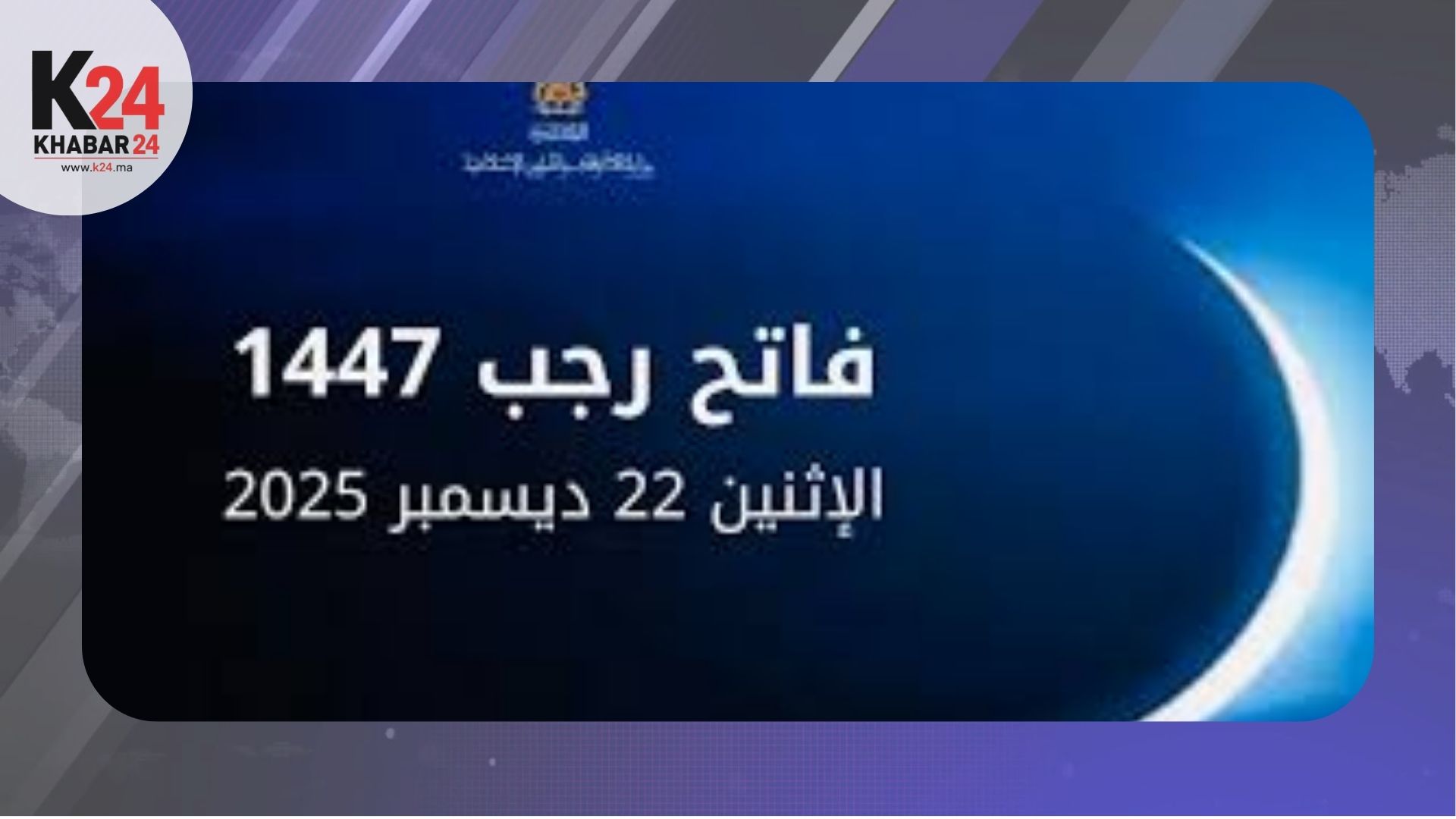 وأوضحت الوزارة، في بلاغ لها، أنها راقبت هلال شهر رجب مساء يوم السبت 29 جمادى الآخرة 1447 هـ، الموافق لـ20 دجنبر 2025، حيث لم يثبت لديها ثبوت رؤية الهلال.