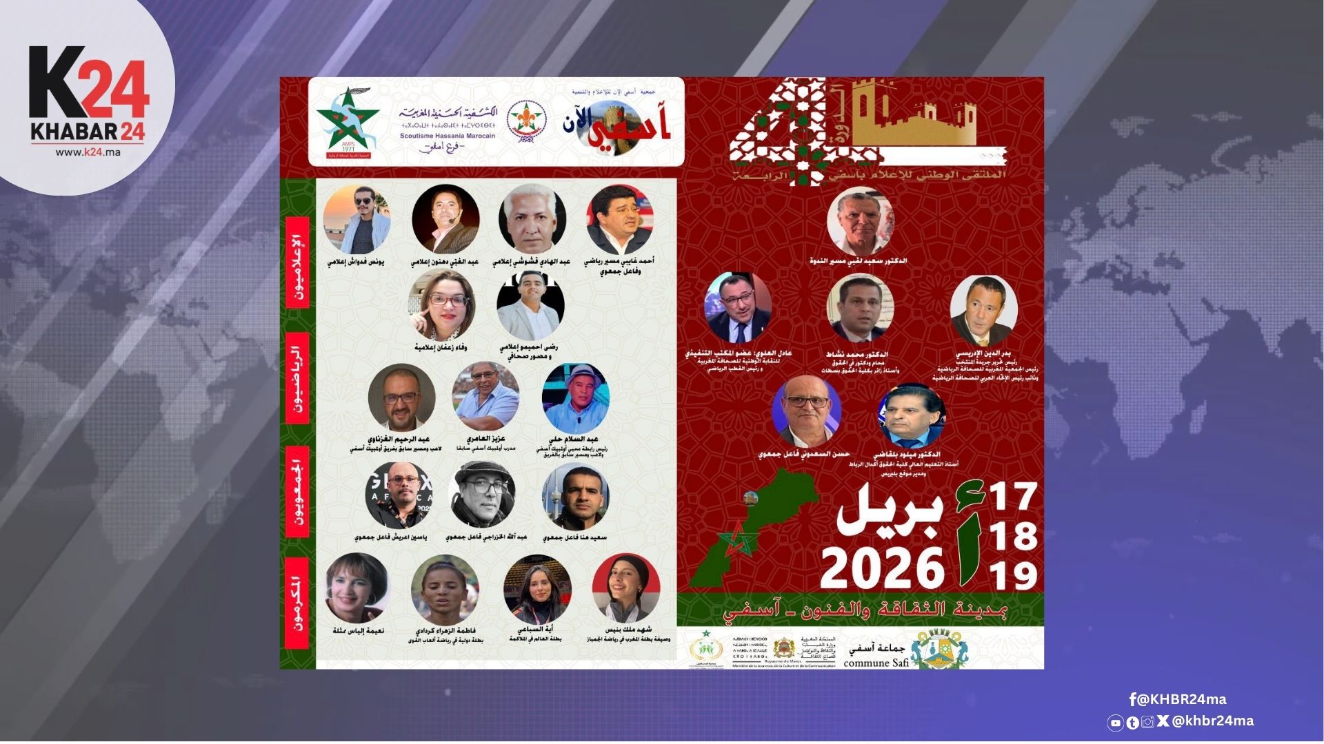 تستعد مدينة آسفي لاحتضان فعاليات الملتقى الوطني الرابع للإعلام، وذلك أيام 17 و18 و19 أبريل 2026 بـ مدينة الثقافة والفنون، في مبادرة تروم تعزيز النقاش العمومي حول أدوار الإعلام، خاصة الإعلام الرياضي، في خدمة القضايا الوطنية.